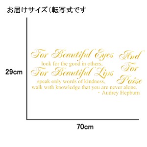 ウォールステッカー オードリー 名言 金 光沢 36cm×66cm For beautiful eyes, look for the good in others...
