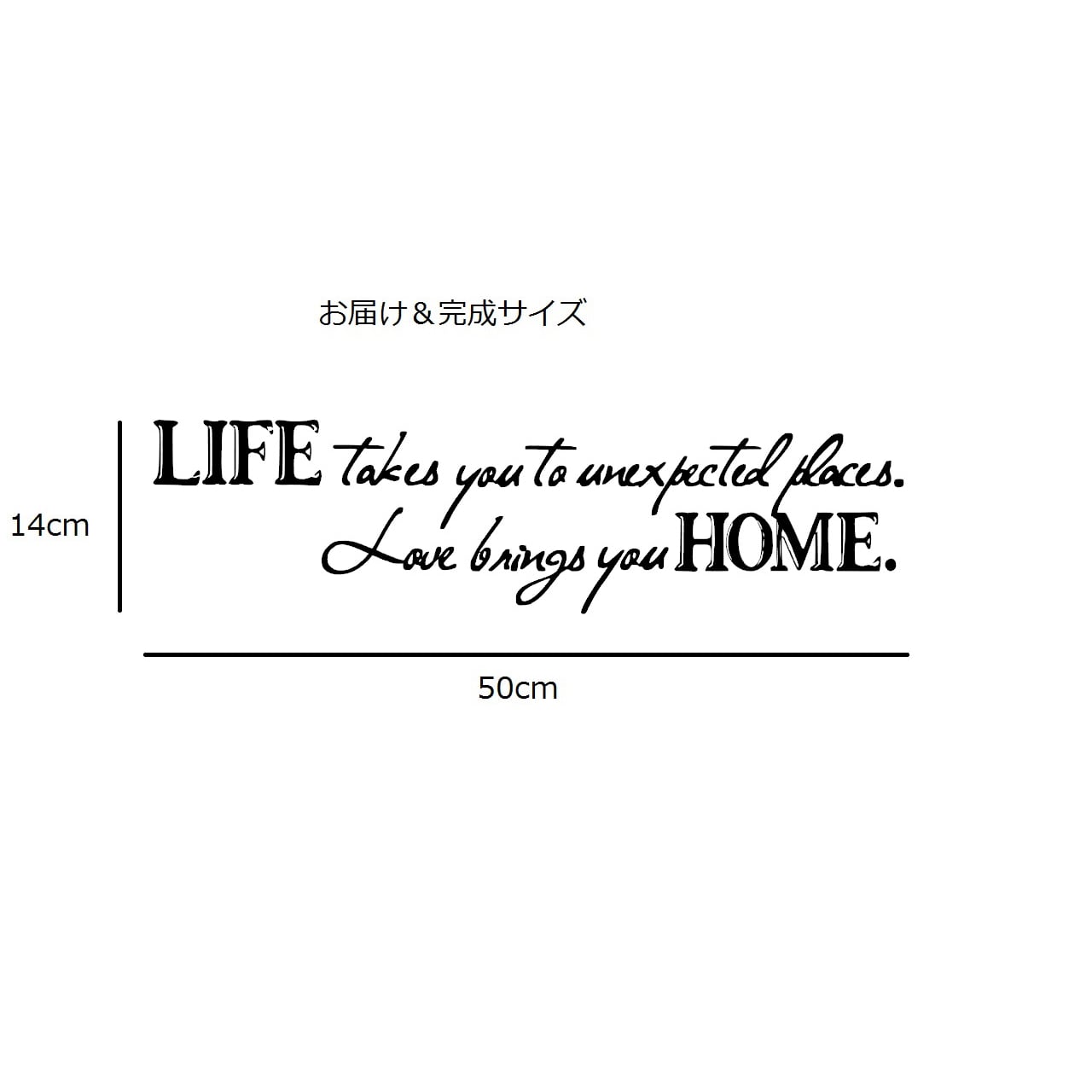 人生はあなたを予期せぬ場所に導き、愛はあなたを家へと導く という意味の素敵なウォールステッカーです。LIFE takes you to unexpected places, LOVE brings you home