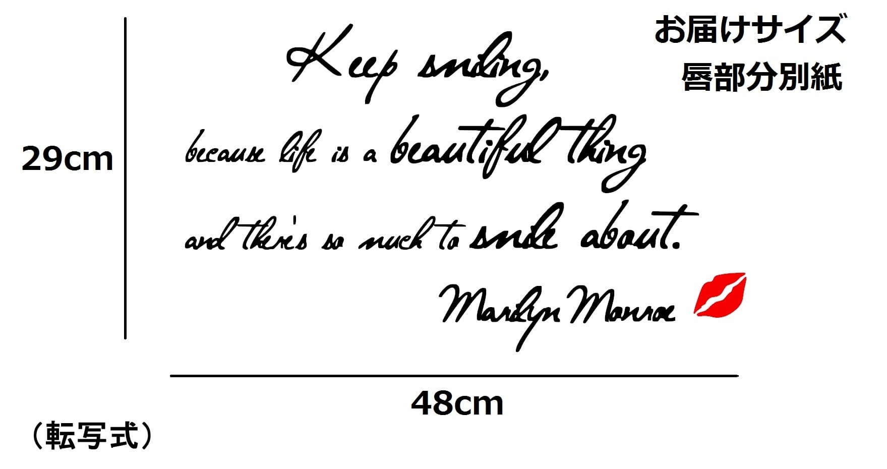 ウォールステッカー マリリンモンロー 名言 白 マット Keep smiling 筆記体 タイプ1 英字 英語 マリリン モンロー 店舗 寝室 リビング