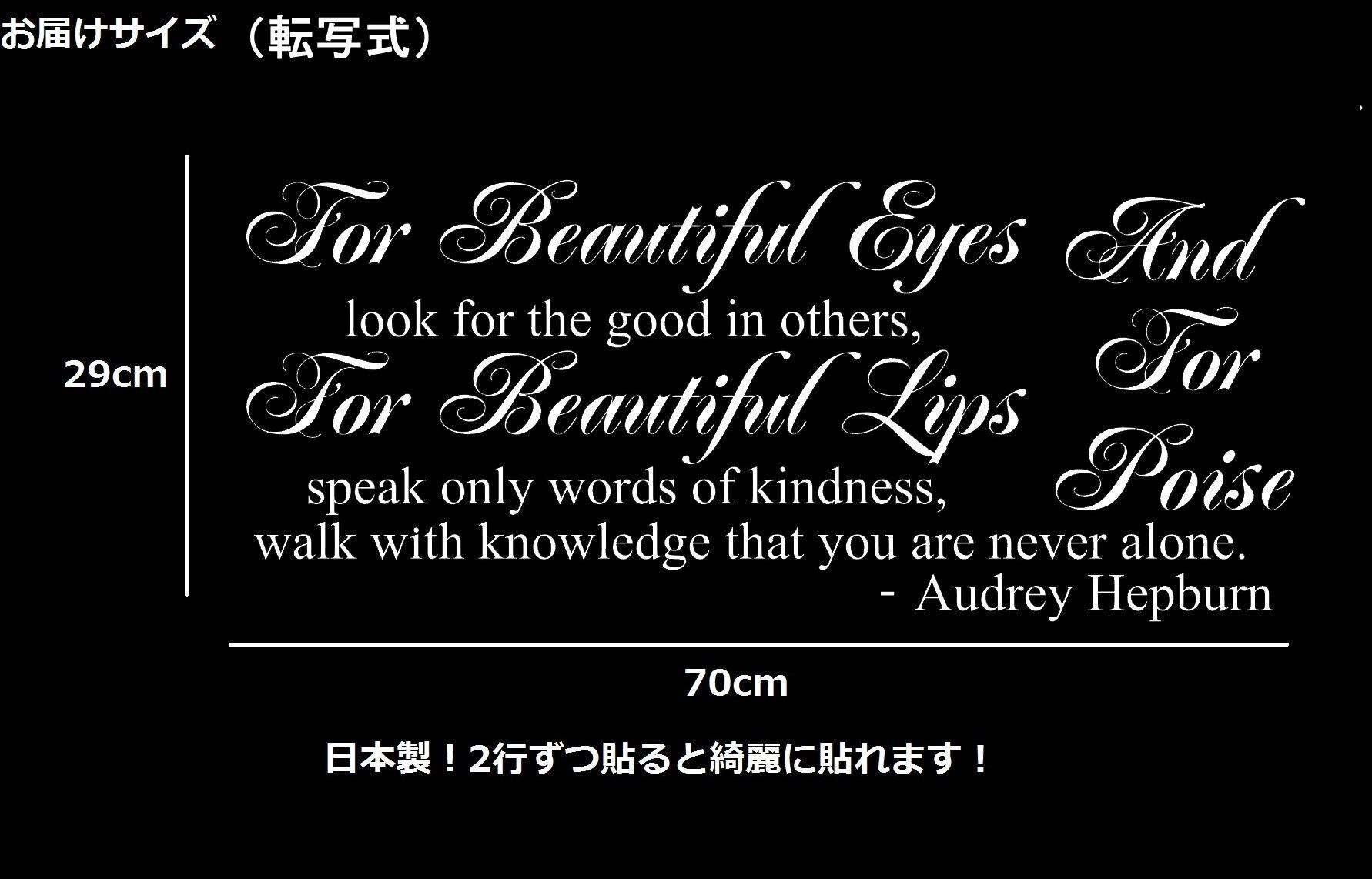 ウォールステッカー オードリー 名言 白 マット 36cm×66cm For beautiful eyes, look for the good in others...