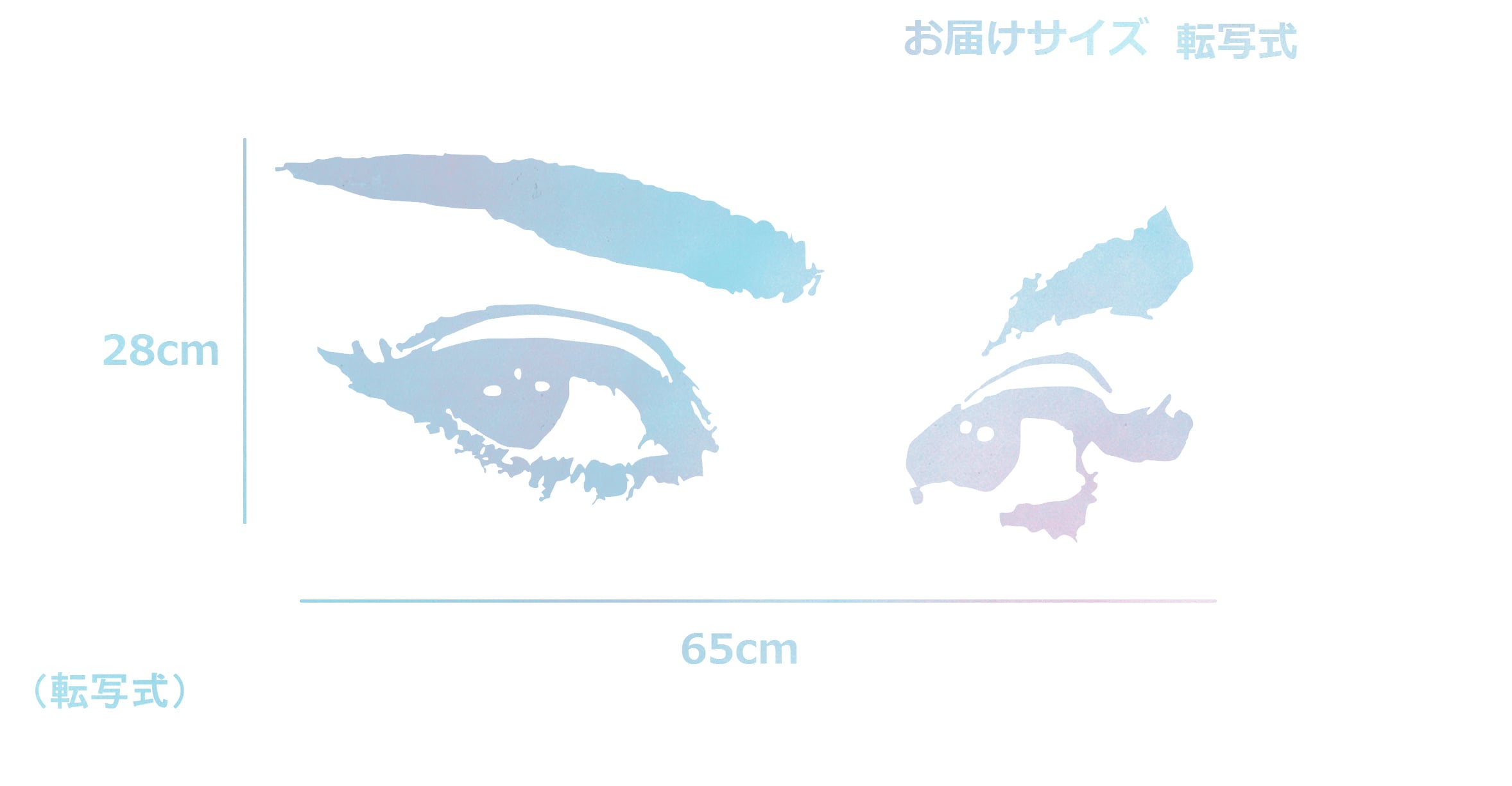 白の下地に空色、ピンク混合のスプレーアート(水性)で色合いが1品1品異なります。 有名女優のまなざしをモチーフにしたウォールステッカー。お部屋の印象がぐっと締まります。