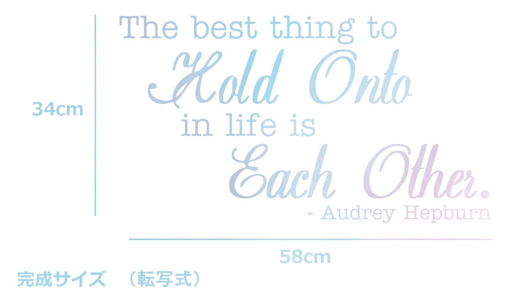 ウォールステッカー 名言 空ピンク 光沢 オードリーヘップバーン 英字 1 The best thing to hold onto in life is each other スプレーアート